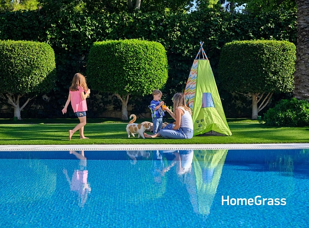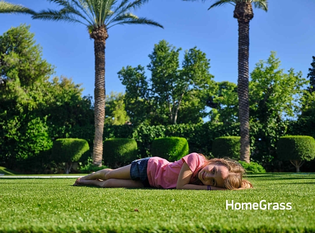 Το συνθετικό γκαζόν προσφέρει μια πολυτελή εμφάνιση πρασίνου για πολλά χρόνια, γεγονός που δεν μπορεί να επιτευχθεί με το φυσικό γκαζόν που καταπονείται περισσότερο από τη χρήση και τις καιρικές συνθήκες. Το συνθετικό γκαζόν HomeGrass μπορεί να διατηρήσει το πράσινο χρώμα του, ανεξάρτητα από τις καιρικές συνθήκες, ενώ οι ίνες φαίνονται φυσικές και φρέσκες όλο τον χρόνο.